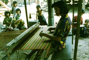the Thai borders. Trainers from Thai weaving villages taughtCambodian refugees their